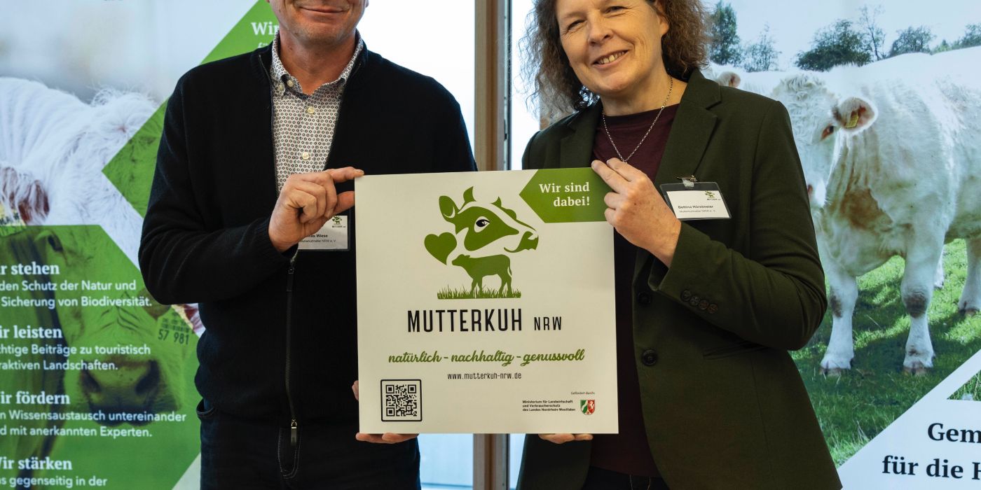 Der Mutterkuhhalter NRW e. V. wurde 2022 gegründet, um die Öffentlichkeit über diese besondere Haltungsform und ihre Leistungen für Tierwohl, Artenvielfalt und Pflege der Kulturlandschaft zu informieren und die Belange der Tierhalter zu vertreten. Inzwischen hat der Verein mehr als 200 Mitglieder und betreibt mit Förderung durch das Ministerium für Landwirtschaft und Verbraucherschutz NRW eine engagierte Öffentlichkeitsarbeit. Neben Internetauftritt, Broschüren und Social Media-Kanälen kommt jetzt ein weiterer Baustein hinzu, denn der Verein präsentiert sich vom 19. bis 28. Januar 2024 mit einem eigenen Stand auf der Grünen Woche in Berlin. Auf Einladung des Ministeriums sind die Mutterkuhhalter Mit-Aussteller in der NRW-Halle.