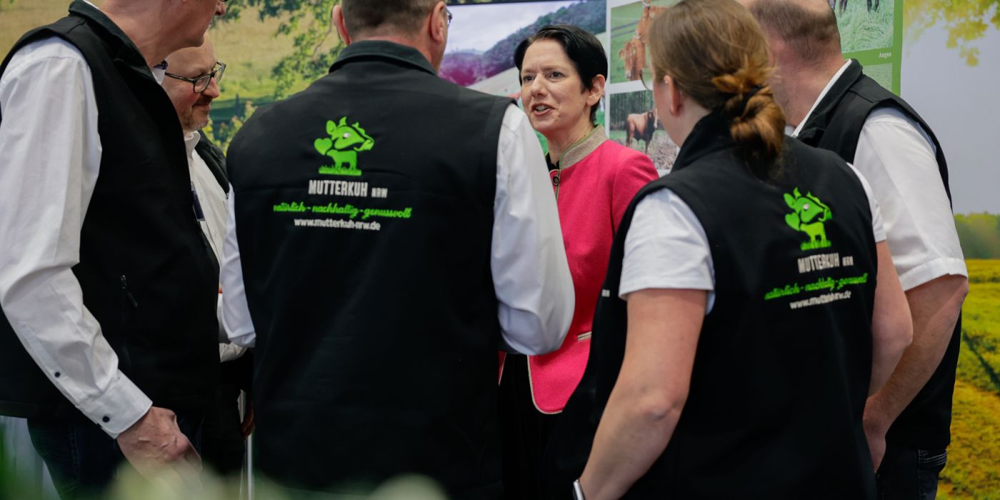 Fotos: Ministerin Silke Gorißen mit Mutterkuhhaltern aus NRW auf der Grünen Woche 2025; Thomas Wiese und Bettina Hörstmeier, beide Vorsitzende des Mutterkuhhalter NRW e. V., im Interview mit Thomas Michaelis