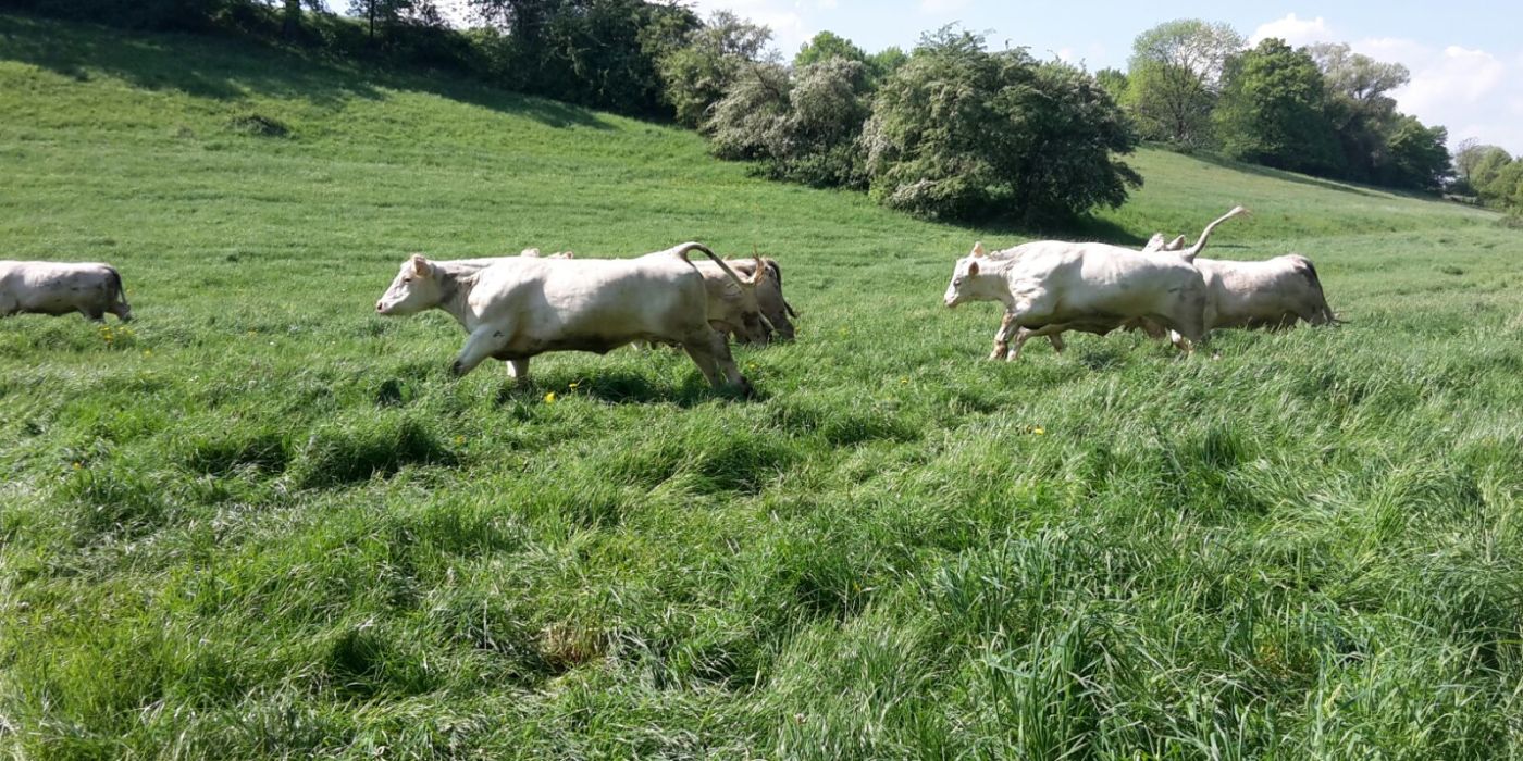 Der Weideauftrieb ist für alle Mutterkuhhalter ein bedeutendes Ereignis, da er den Übergang von der Winterhaltung der Tiere in den Stallungen zur Weidehaltung im Sommer markiert. Nach der großen Freude, die sich durch Herumspringen der Tiere zeigt, beruhigen sie sich wieder und fangen an, das frische Gras zu fressen.